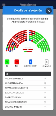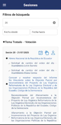 Información de sesiones, temas, votaciones e intervenciones de los Asambleístas de la Asamblea Nacional del Ecuador