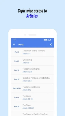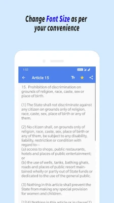 In this application Constitution India Bare Act, We have come up with whole constitution in your device with easy to use user interface.