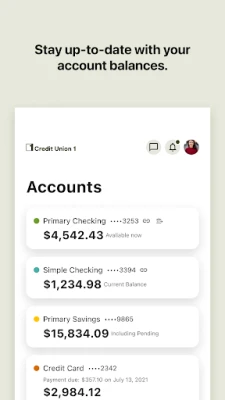 To use this app, you must be registered for Online Access with Credit Union 1. You can register at cu1.org. By downloading this app, you agree to our Mobile Banking Service Agreement, which is available on cu1.org.