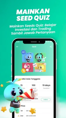 Seeds Finance is a fun and interactive financial education app built on a stock investment game concept. With Seeds, you can learn investing and understand stocks through a safe, risk-free stock trading simulator. Play games, join quizzes, and compete in tournaments to learn finance while winning real cash prizes worth millions of rupiah.